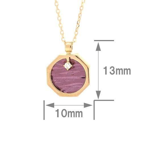 ●チェーン素材:K18YGスライド式チェーン(長さ調整可能) ●ペンダント素材:K18パープルゴールド/K18YG 天然ダイヤモンド使用1石0.01ct ●チェーン長さ:最長45cm ●ペンダントサイズ:【縦】最大約13mm(バチカン部分含む) 【横】最大約10mm ※略語・記号説明: PT: プラチナ WG: ホワイトゴールド PG :ピンクゴールド YG: イエローゴールド