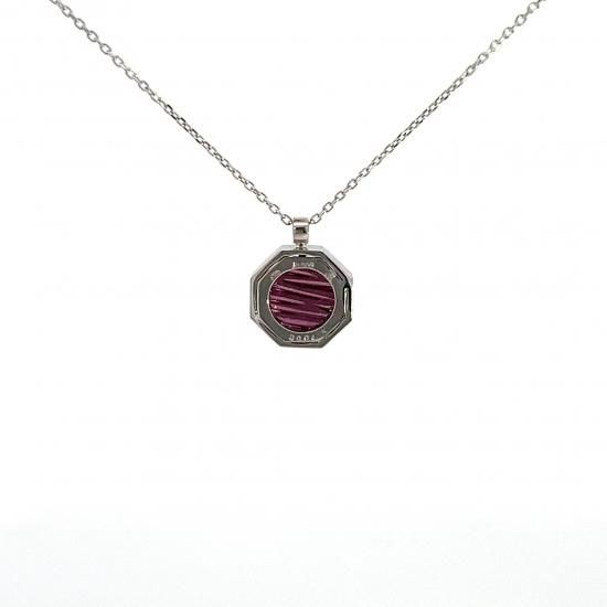 ●チェーン素材:PT850スライド式チェーン(長さ調整可能) ●ペンダント素材:K18パープルゴールド/PT900 天然ダイヤモンド使用1石0.01ct ●チェーン長さ:最長45cm ●ペンダントサイズ:【縦】最大13mm(バチカン部分含む) 【横】最大10.2mm ※略語・記号説明: PT: プラチナ WG: ホワイトゴールド PG :ピンクゴールド YG: イエローゴールド