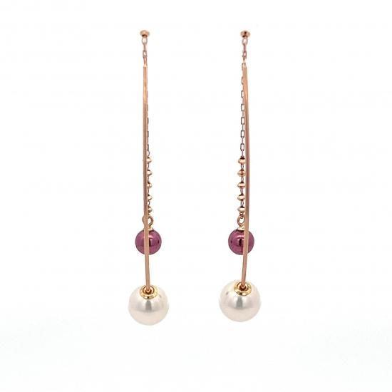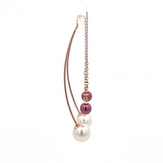 PEARL&PURPLE相性はバツグン!パールとのコラボレーション) ●ピアス素材:K18RG(カットボールパーツ6コ付き×2/カーブロングバー×2) ● ピアスデザイン素材:K18パープルゴールド/アコヤパール×2 ■サイズ:K18パープルゴールド丸玉直径約5mm/アコヤパール直径約7mm珠×1 (片側) ピアス針:【長さ】約40mm【太さ】約0.5mm シリコン付パールキャッチ ※略語・記号説明 PT: プラチナ RG: ローズゴールド
